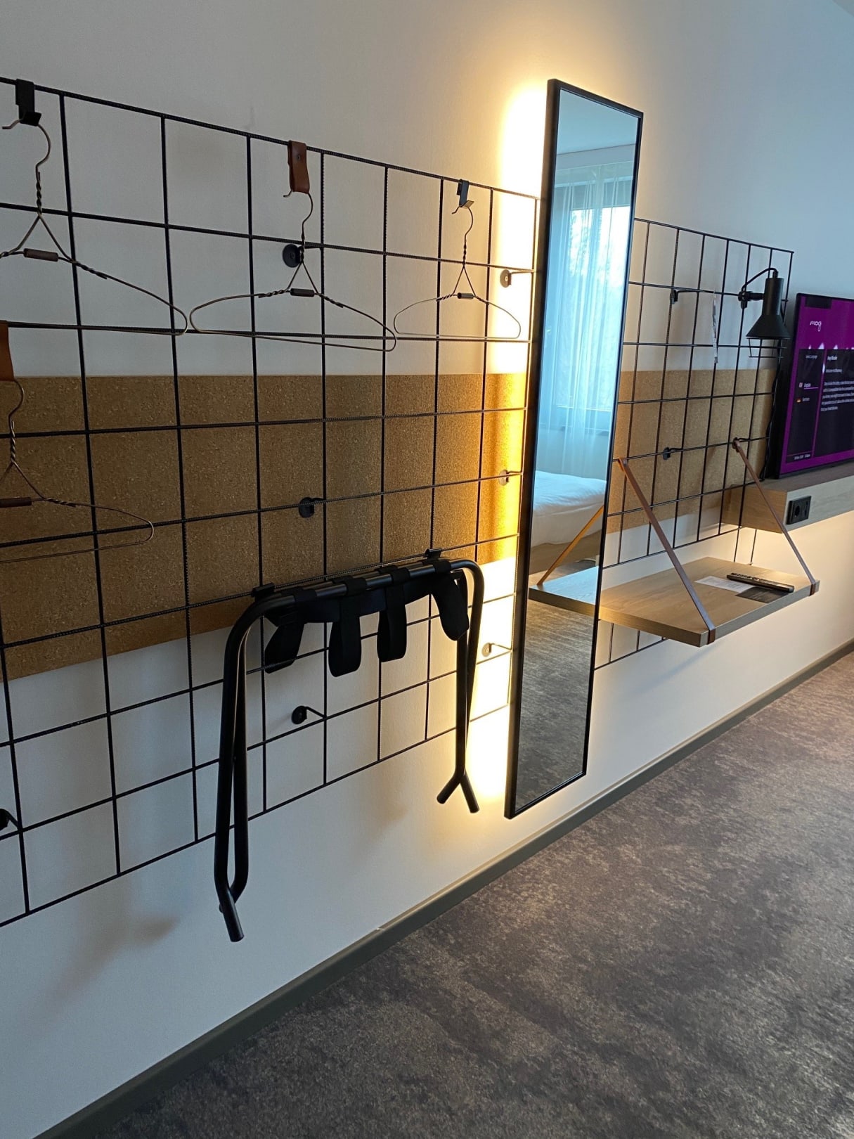 ZimmerAusreichend Kleiderbügel für einen kurzen Aufenthalt. Kofferständer sehr nützlich, da sonst keine andere Ablagemöglichkeit vorhanden