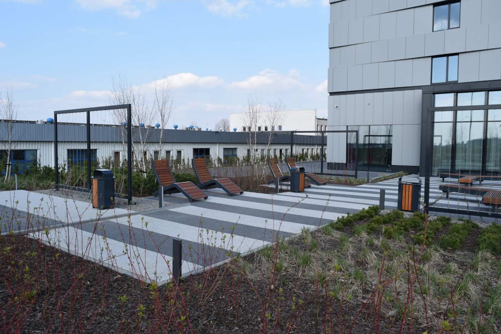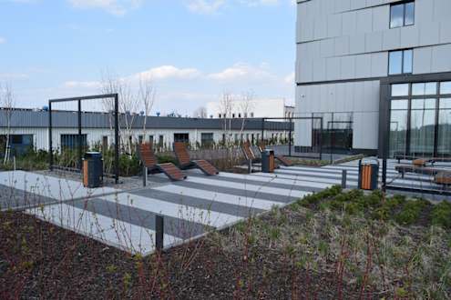 Gartenanlage des Hotels mit verschiedenen Sitzmöglichkeiten