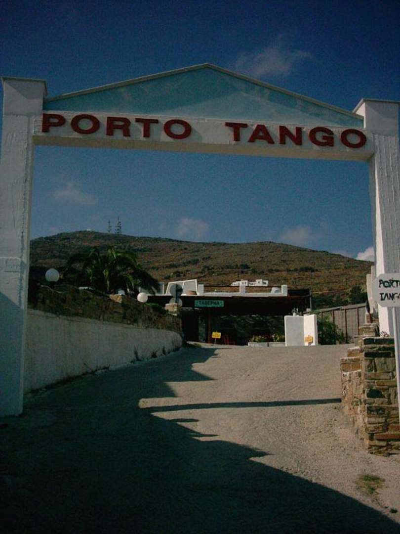 Herzlich willkommenDie Einfahrt zum Hotel Porto Tango im Ort Aghios Ioannis auf der Insel Tinos
