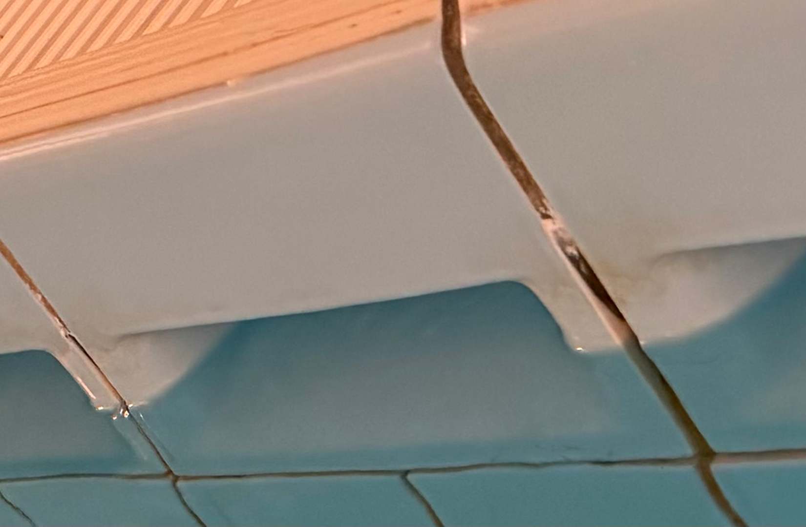 sanierungsbedürftiges Becken mit dreckigen Fugen und Fliesen