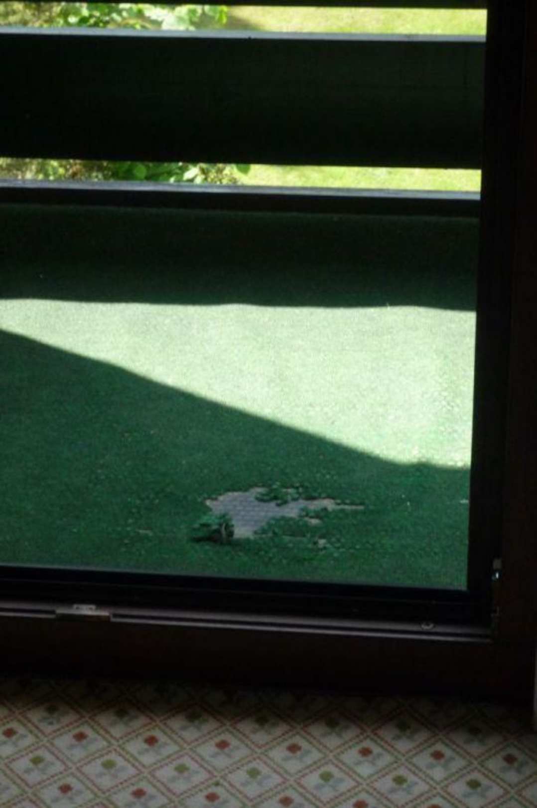 Loch im Rasenteppich auf dem Balkon