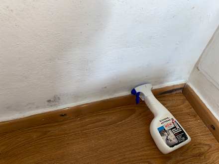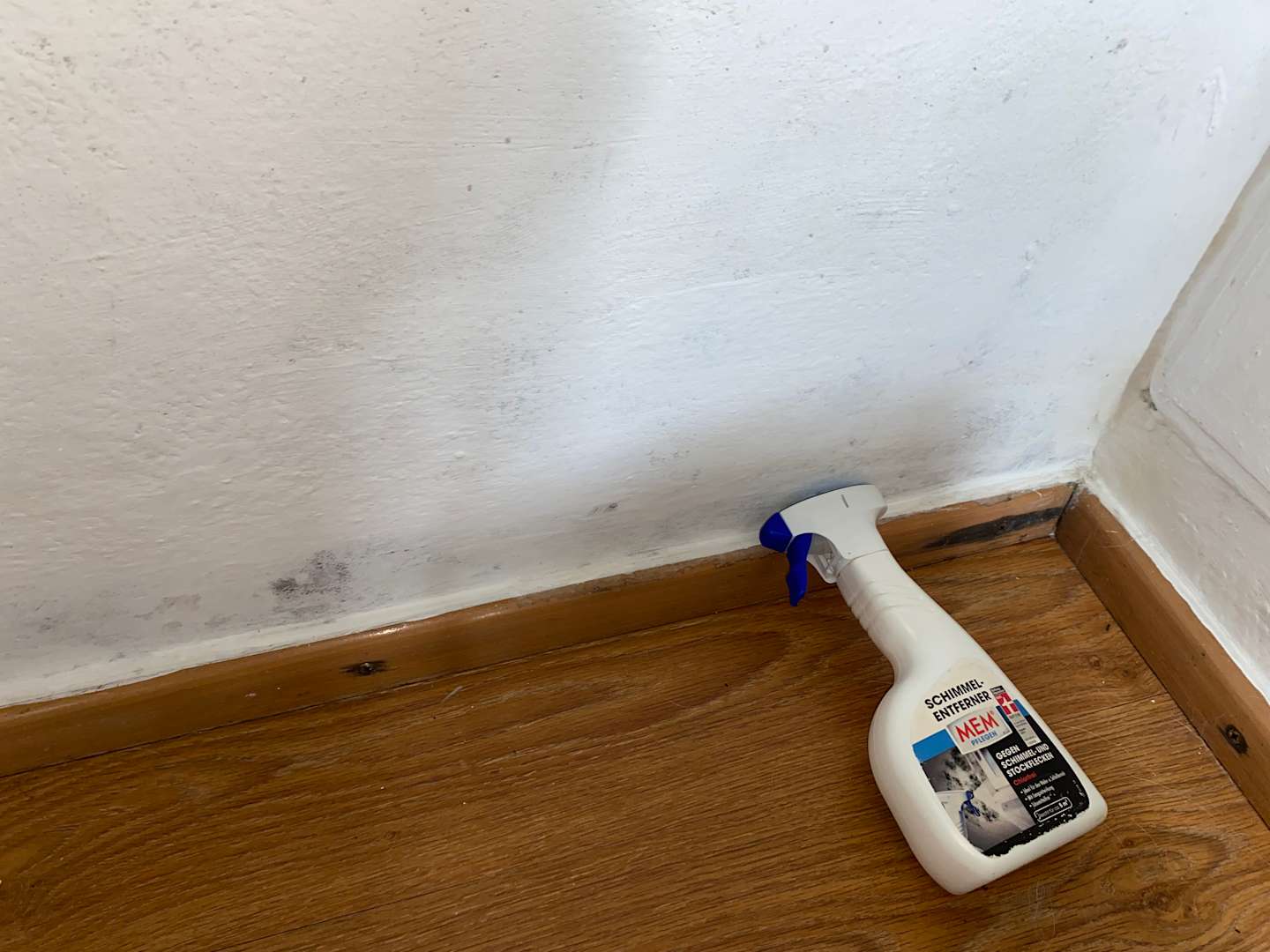 Der Schimmelentferner war schon in dem Haus vor Ort in der Küche bei weiteren Utensilien zu finden.