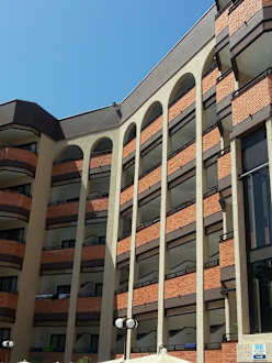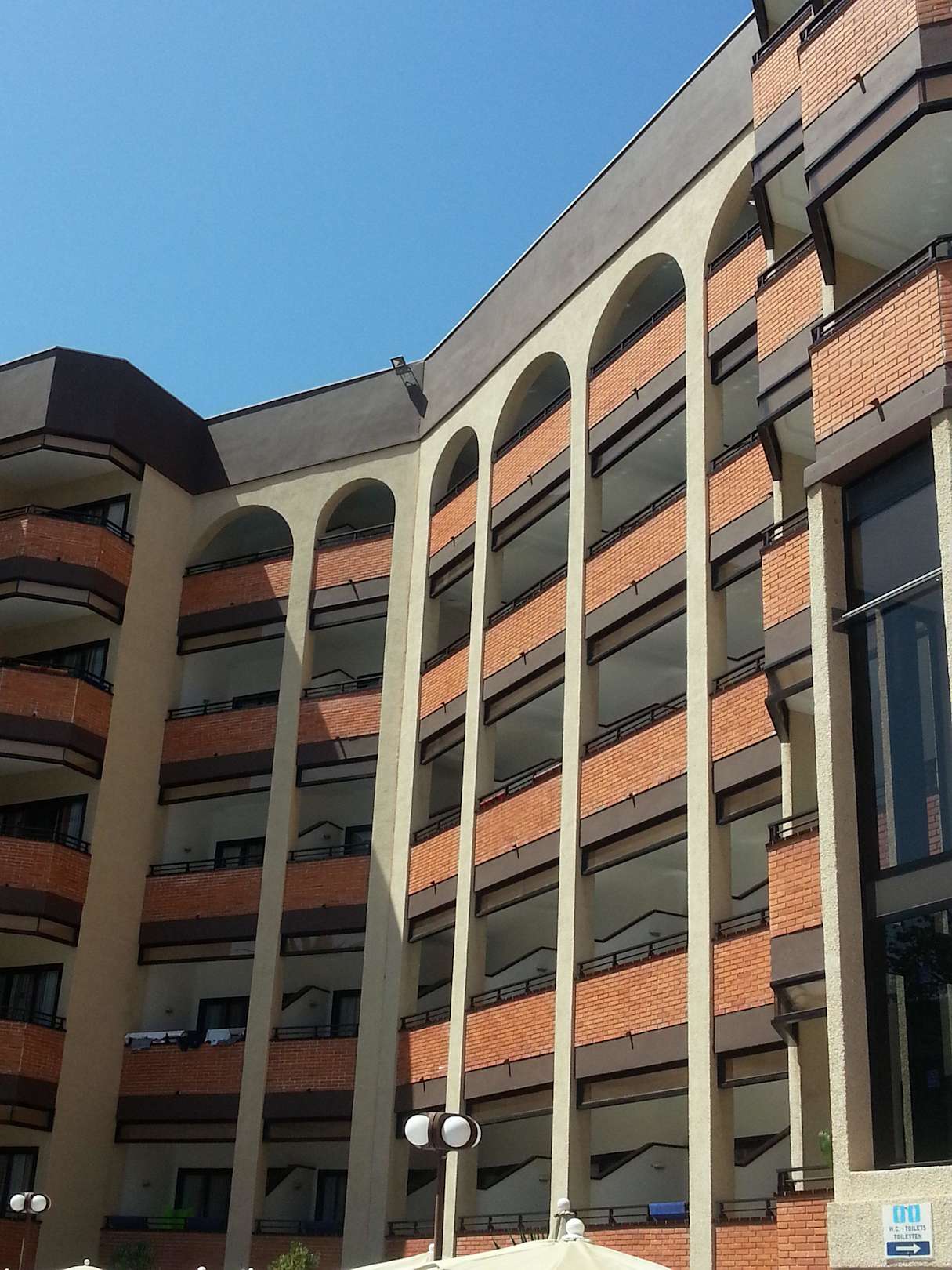 Blick auf unseren Balkon von der Poolanlage