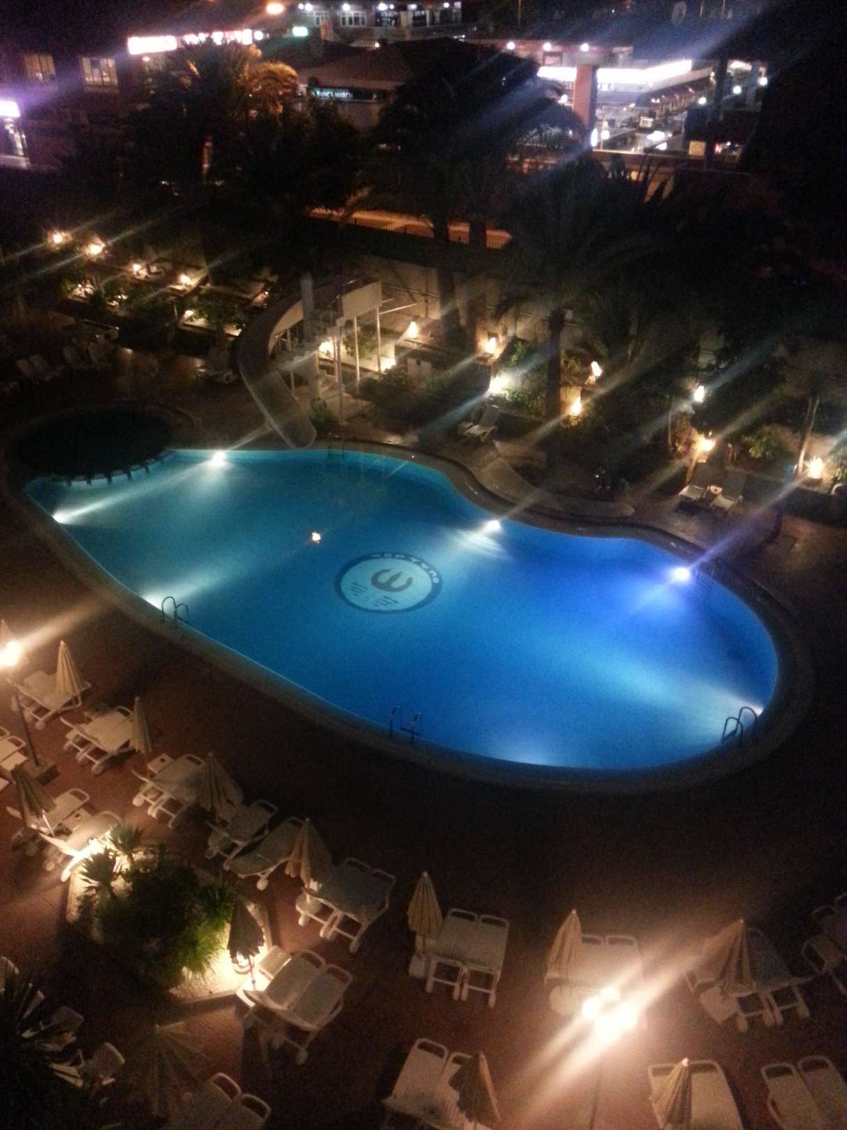 Pool bei Nacht, vom Balkon Zimmer 424