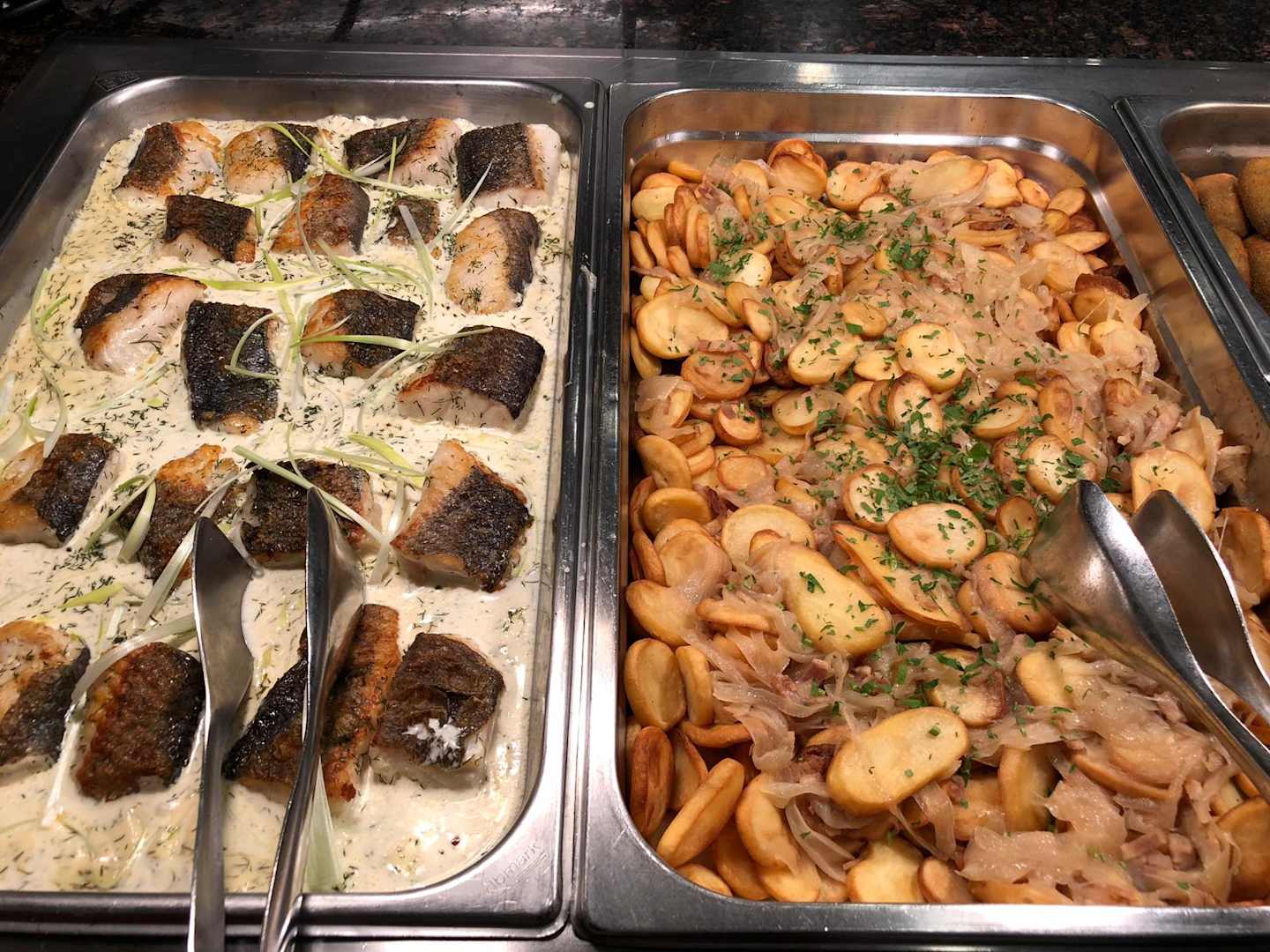 Abend Buffet Fisch und Bratkartoffeln