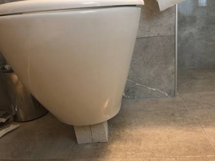 Die Toilette kaputt..Ist abgestützt von einem Stein
