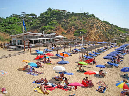 Strand-Restaurant vor dem Hotel Clube Praia da Oura.