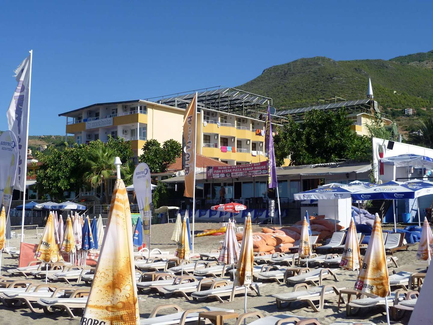 Blick vom Strand zum Hotel