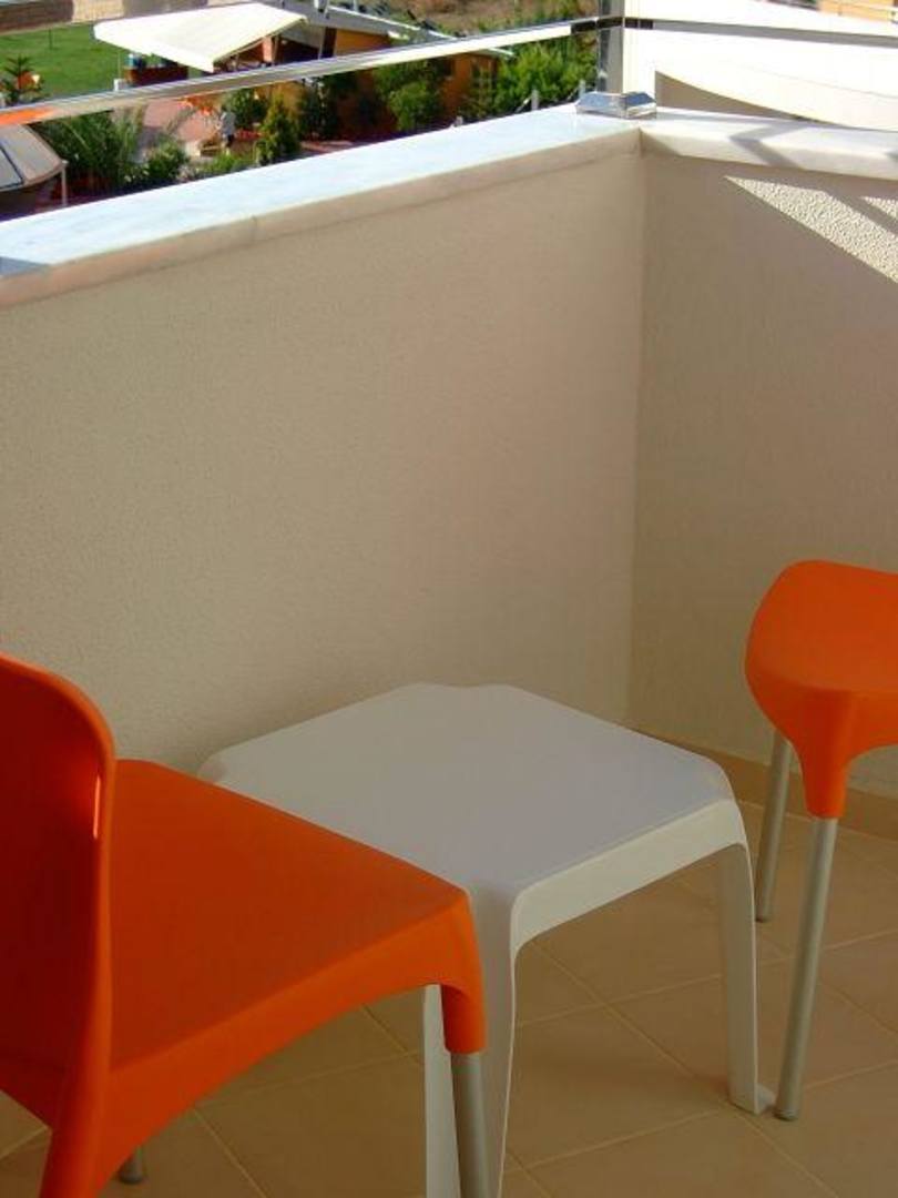 unser "kleiner" Balkon zum Pool hin, bis abends um 19 Uhr in der prallen Sonne