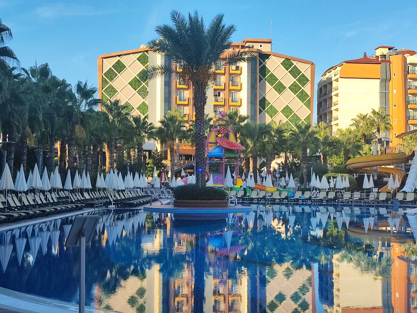 Sport & FreizeitBlick vom Hauptpool auf den D-Block, Zugang zum D-Block per Fahrstuhl oder Treppe, super gemacht