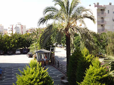 Eingang zur Hotelanlage und Zimmerausblick