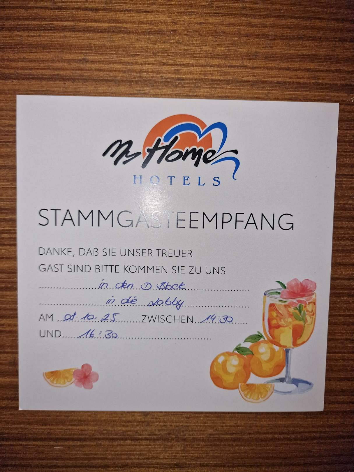 Einladung zum Stammgästetreffen. Nette Idee, haben wir aber nicht genutzt.
