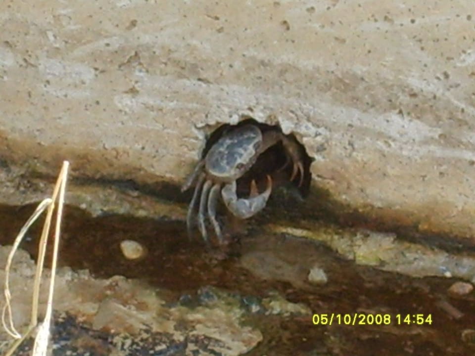 Krabbe im Überlaufgraben verlssßt ihren Baunach dem Unwetter war das Hochwasser weg und die Bewohner konnten aufatmen