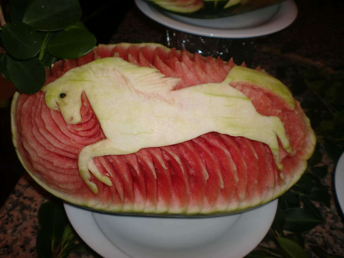 Die kreativ gestaltete Melone im Restaurant