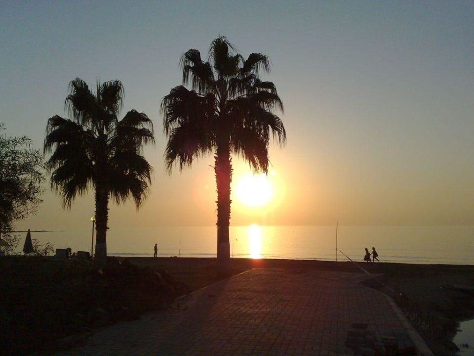 Herrlicher Anblick der Abendsonne mit den Palmen im Vordergrund