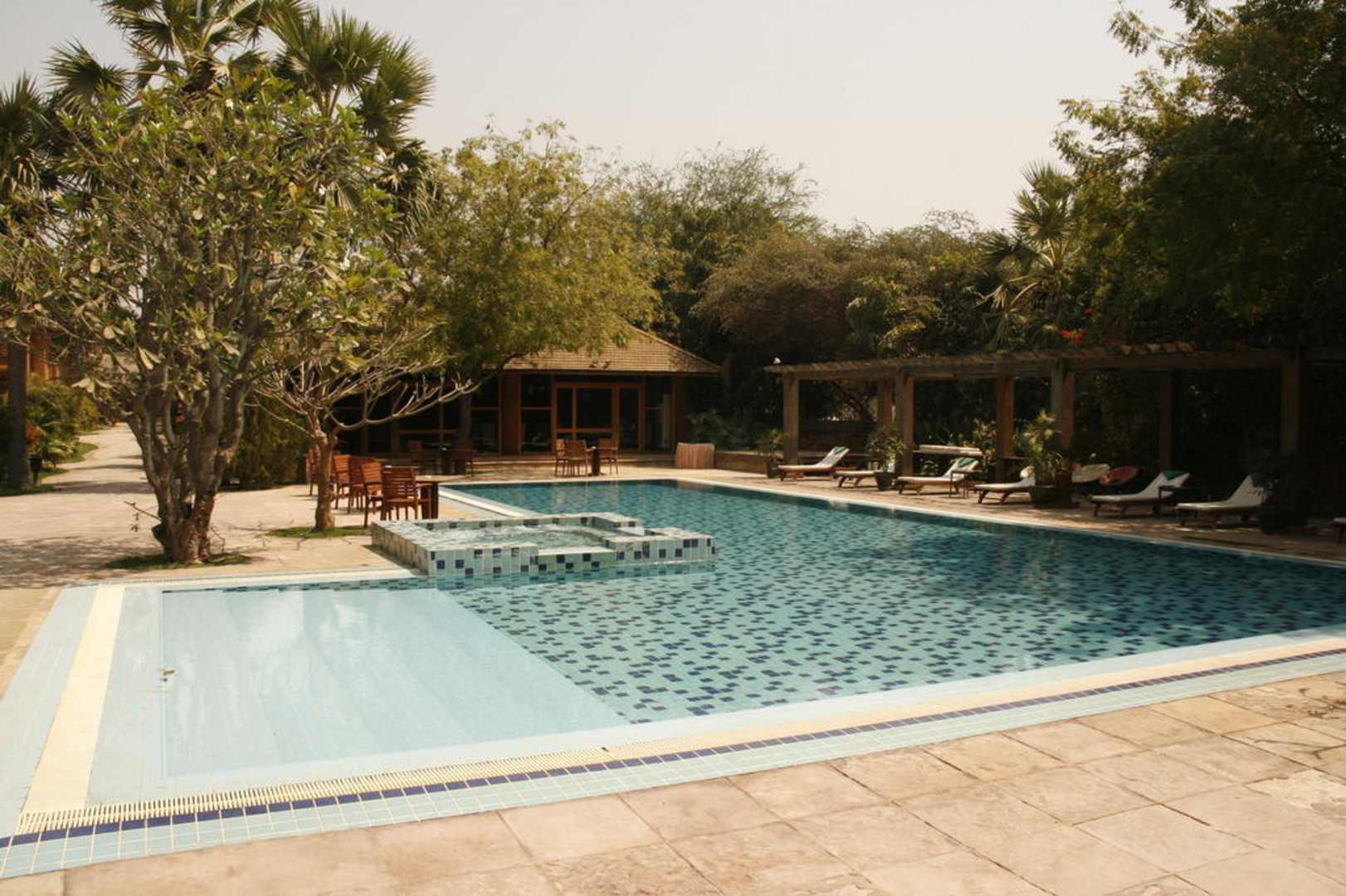 Pool und Restaurant im Hintergrund