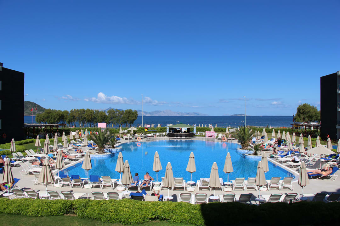 Blick vom Hotel über den Pool