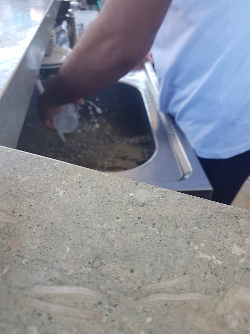 RestaurantGläser werden mit der Hand ohne Spülmittel und Schwamm gespült