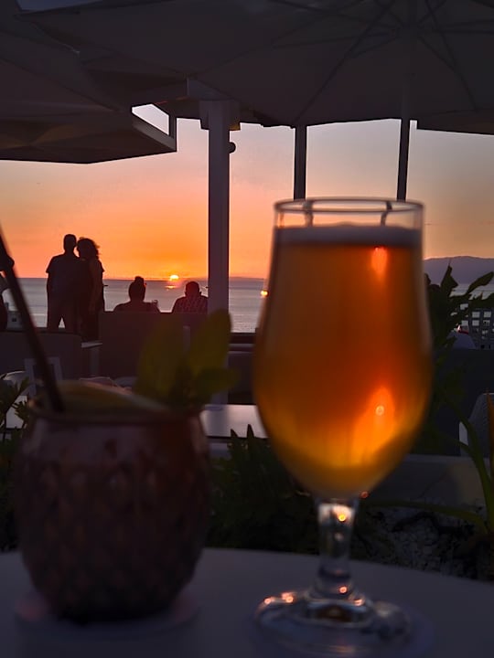Cocktail auf der Dachterrasse mit Sonnenuntergang