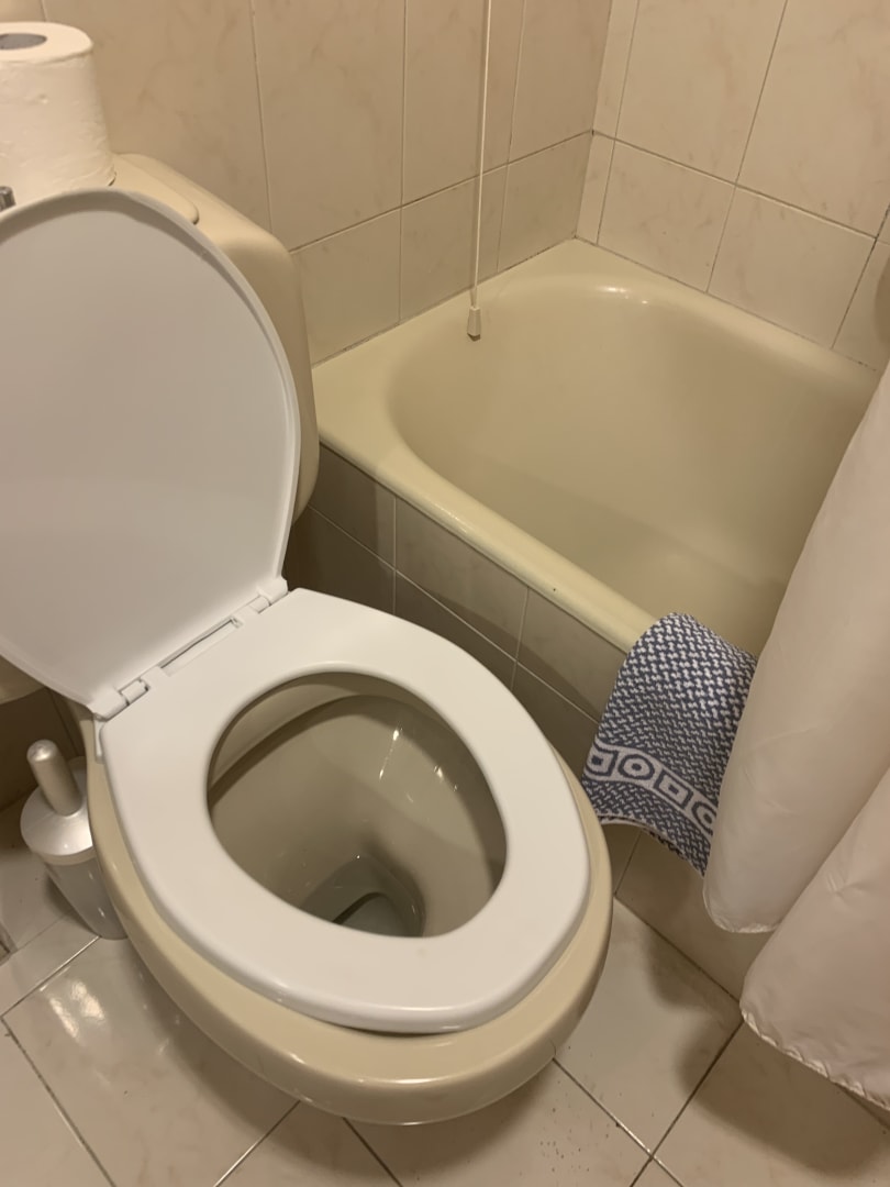 Duschwanne mit der Toilette direkt davor