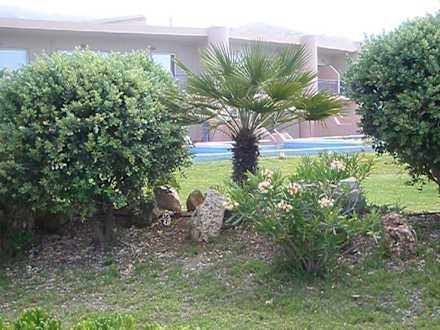 der Park,dahinter die Poolzimmer
