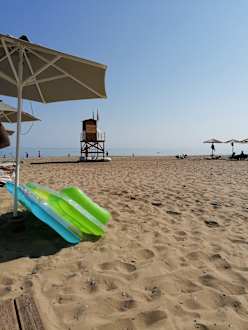 StrandAm äußeren Rand des hoteleigenen Strandabschnitts. Rechts sind die ersten Schirme des Nachbarhotels Delfina Beach zu sehen.