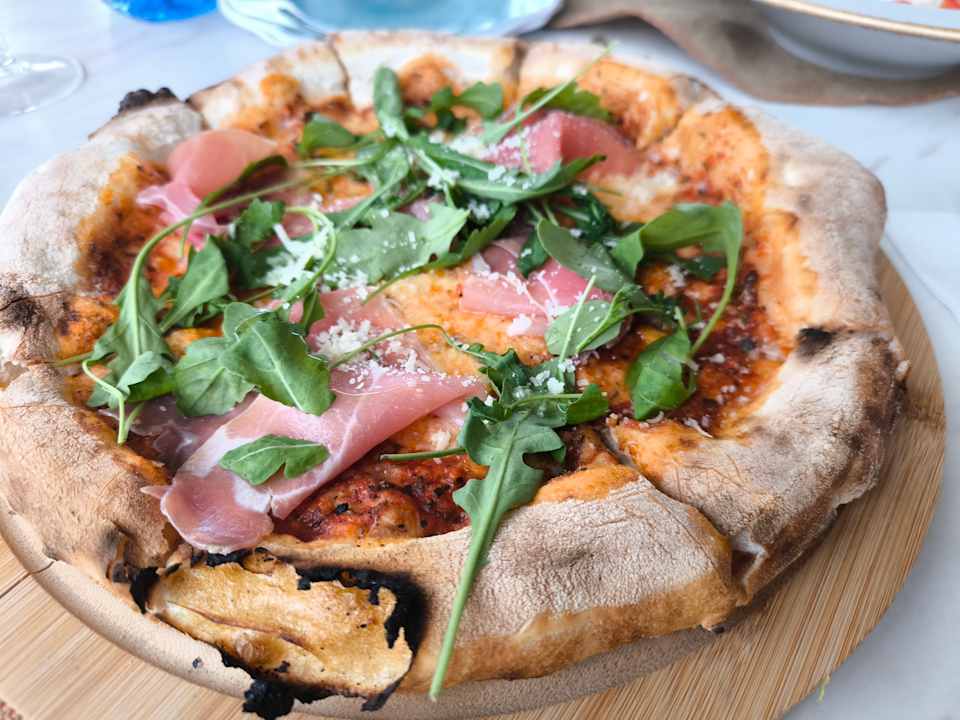 Pizza Prosciutto im Lunch-Restaurant Vivaldi.