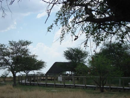 Blick auf die Sitzgelegenheit am Wasserloch