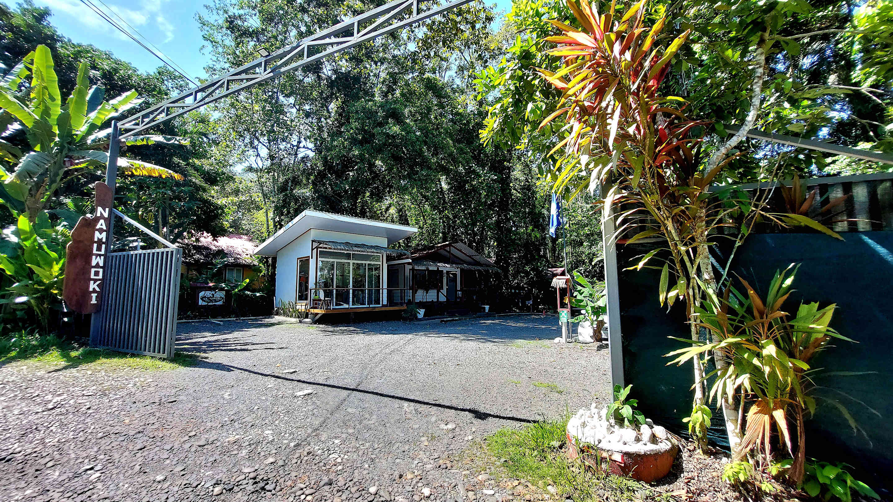 Einfahrt zur Lodge mit Shop und Rezeption