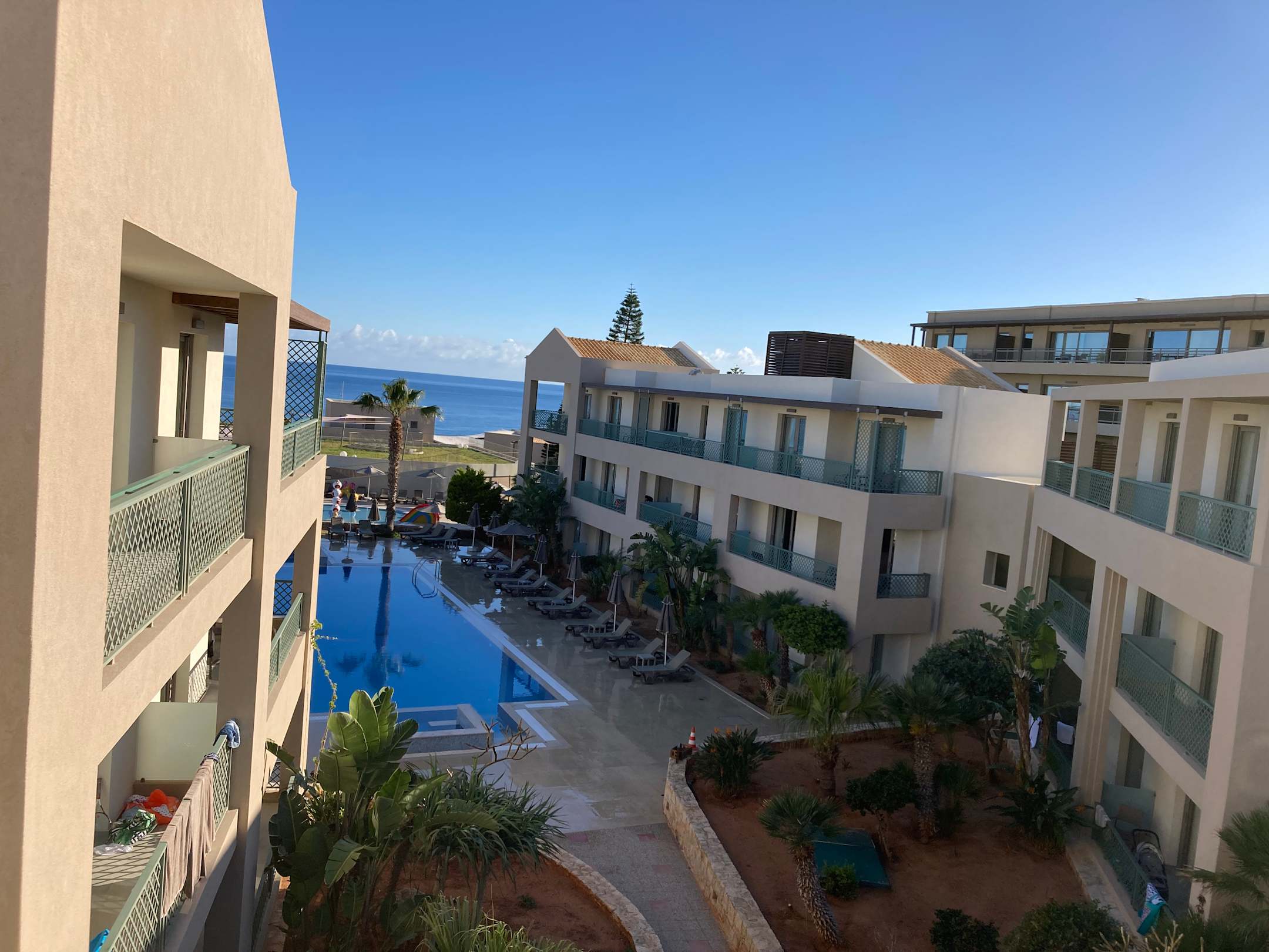 AusblickBlick vom Balkon des Zimmers Richtung Meer. Also etwas verbaut aber das Blau ist da hinten.