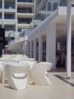 Sitzmöglichkeiten auf der Terrasse am Pool