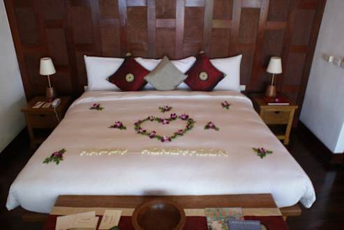 Bei der Begrüßung wurde unser Honeymoon-Bett mit Blüten geschmückt.