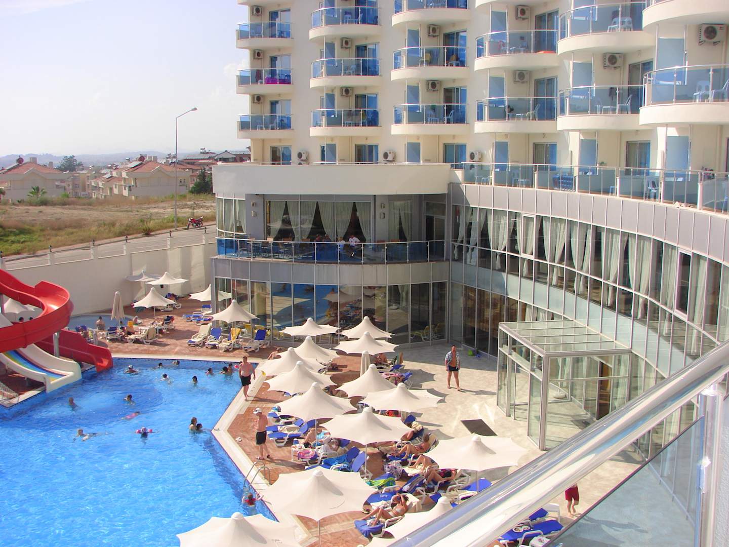 Ausblick Balkon auf Pool rechts