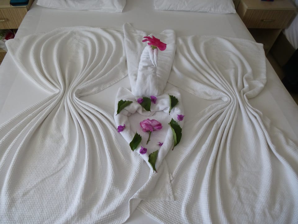 Liebevoll dekoriertes Bett