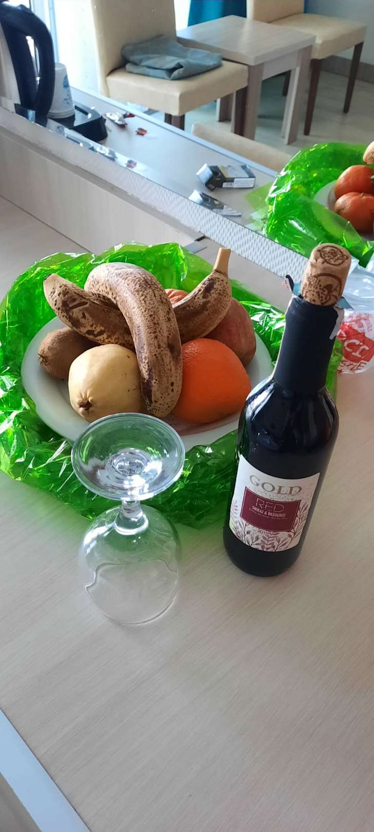 Wein und Obst auf dem Zimmer