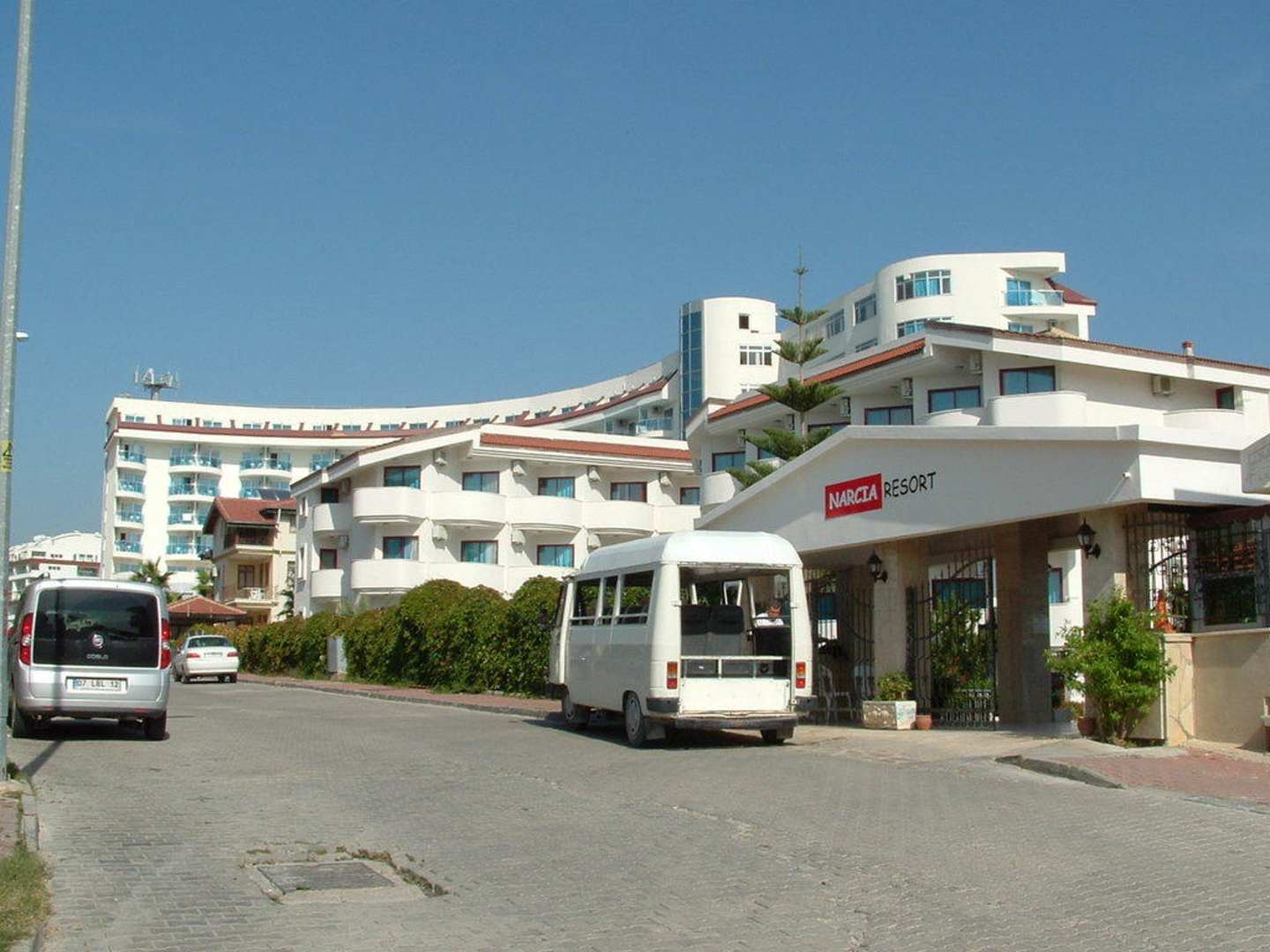 Nebengebäude und HauptgebäudeSicht von der Straße auf die Gebäude sowie das Narcia Taxi und der Eingang/Ausgang zum Strand