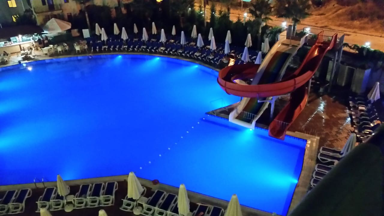 Ausblick Poolanlage abends