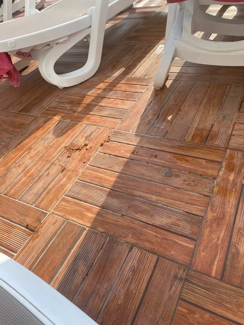 Essensreste auf dem Boden vor dem Pool