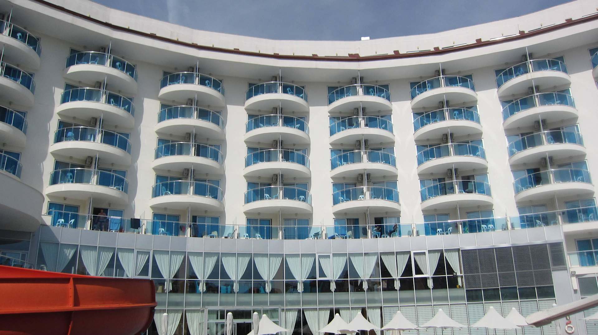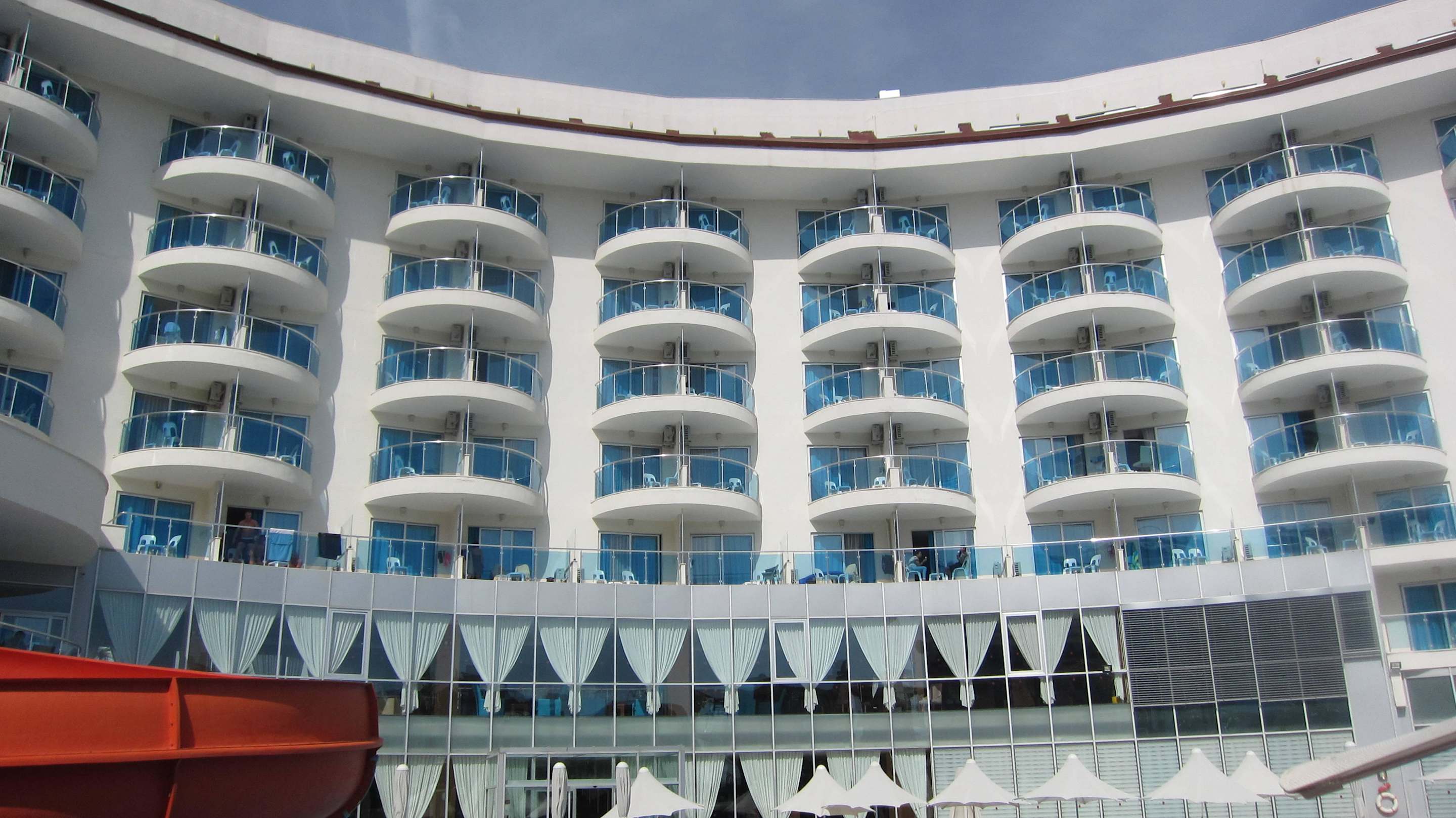Hotel vom Pool aus gesehen