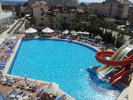 Poolanlage vom Zimmer aus
