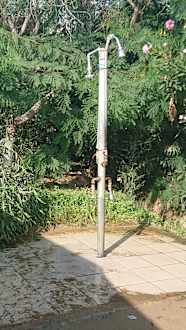 SonstigesDie als hochwertig bezeichnete Stranddusche mit dem Griff, den man annehmen kann und für die Aktivierung der Fußwäsche verwenden muss..