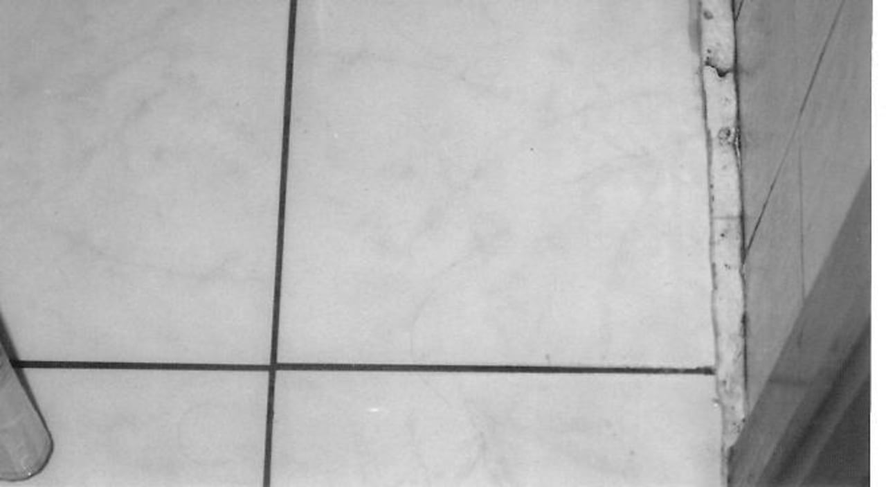 Eine weitere Aufnahme vom Badezimmer, seitliche Ränder mit Schimmel belegt.