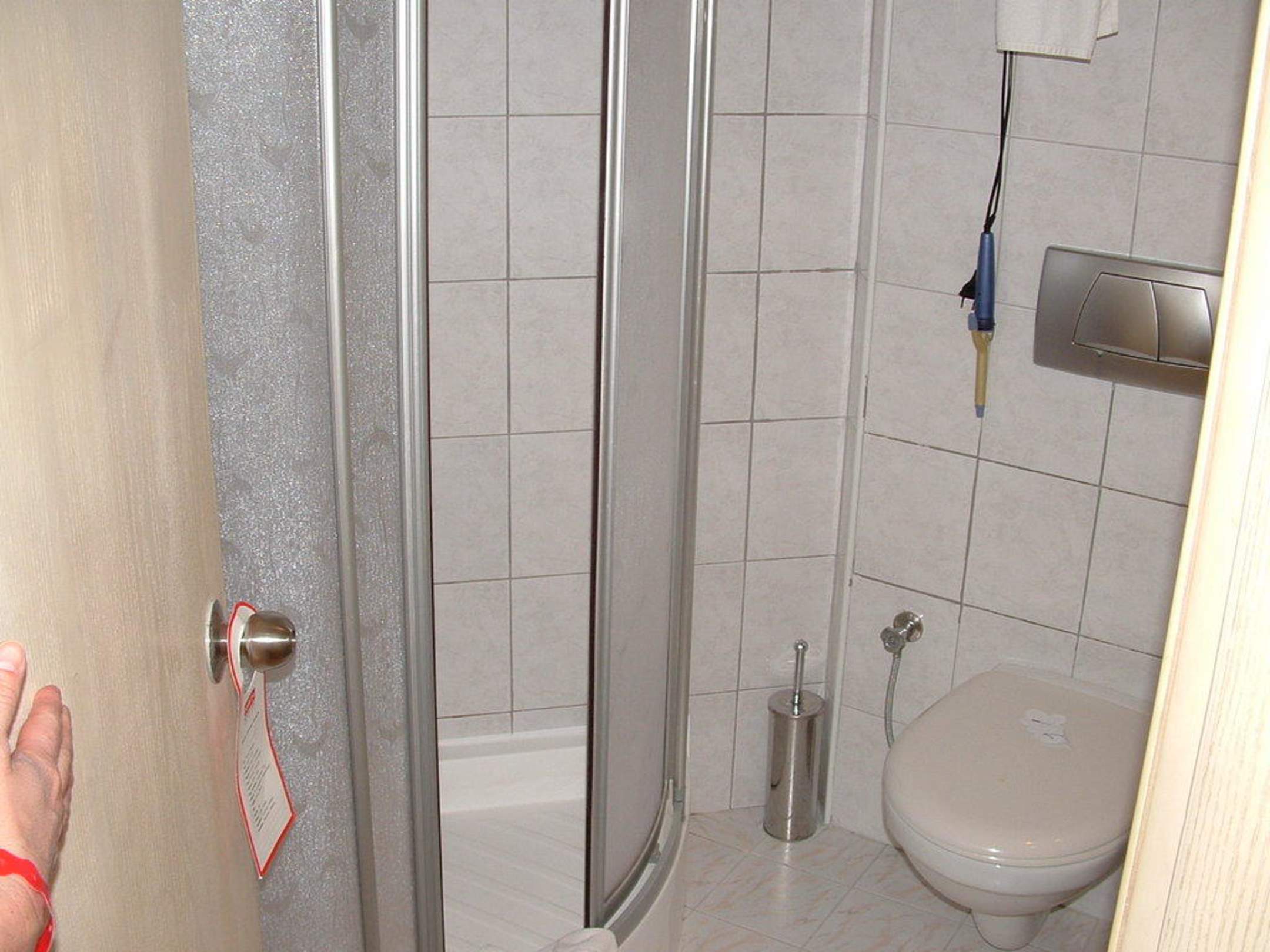 Bad im NebengebäudeEckdusche und WC im Nebengebäude, etwas klein aber zweckmäßig und die Eckdusche bietet ausreichend Platz
