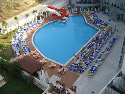 Ausblick vom Zimmer auf den Pool