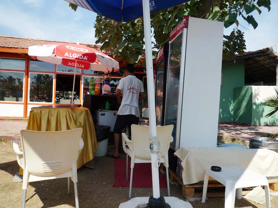 Der Getränkeausschank am Strand - keine Snakbar, nichts zu essen.