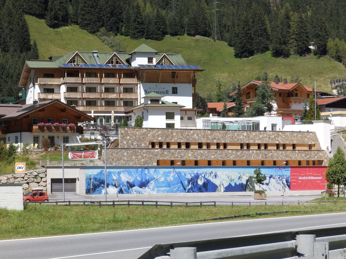 Blick von der Straße auf das Hotel