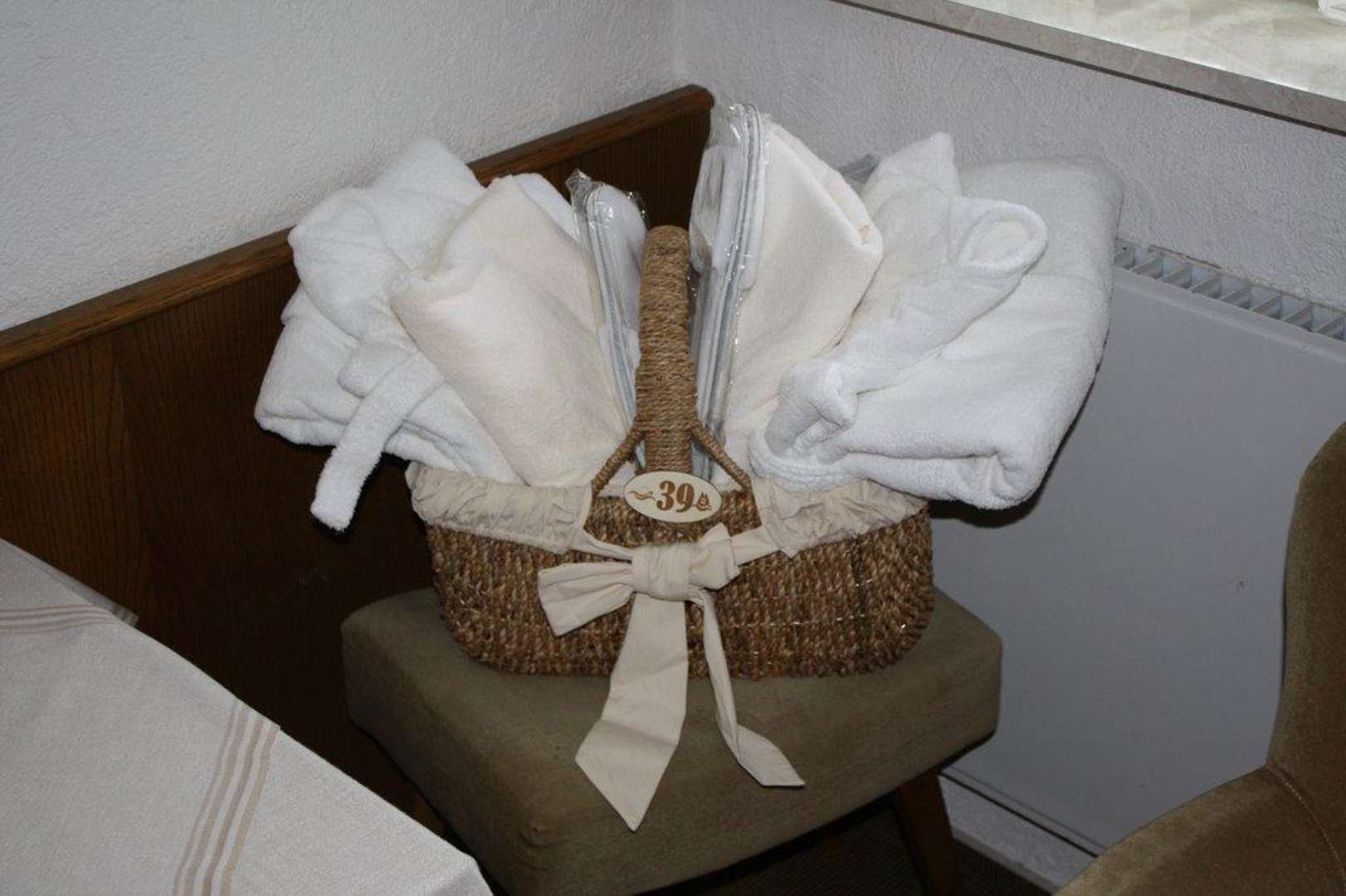 Der Wellnesskorb mit Bademäntel und Handtüchern