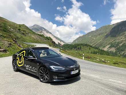 Mit dem hauseigenen Tesla auf Alpentour.