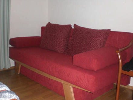 In jedem Zimmer vorhanden - sie kann jederzeit ausgezogen werden und man kann leicht als Erwachsener (teilweise sogar zu zweit) darauf schlafen.