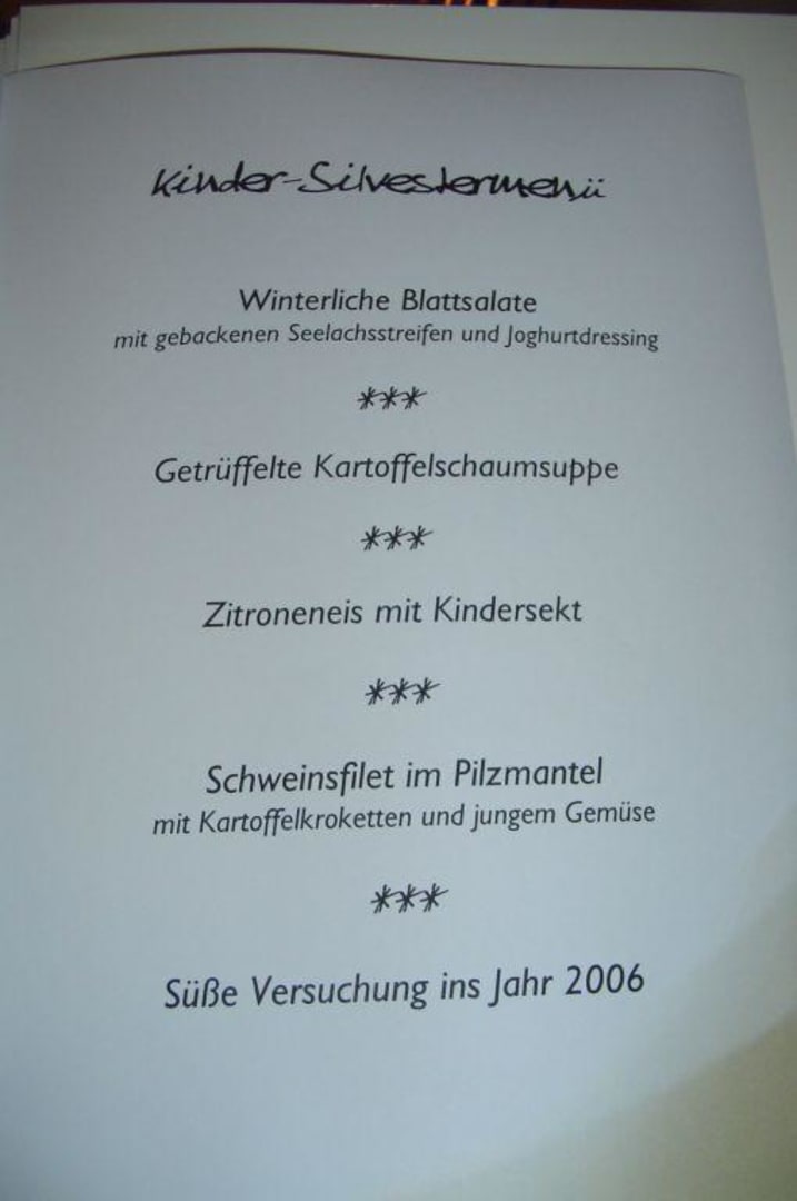 Menü für die Kinder
